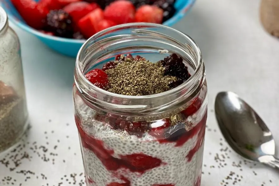 While the calories might seem a little off-putting, chia seed pudding recipes use less than 100 g of seeds. A bag of chia seeds might only contain a few hundred grams of them but this will last a long time. Adding a sprinkle of them to your breakfast is a great way to get more early nutrients.